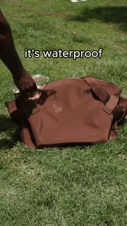Yes, the Toted is built to keep you dry.Made from a special blend of polyester andnylon fibers (called Oxford), it has a supertight weave that acts like a shield, repellingwater and keeping your comfy spotprotected. For verification, check out ourvideo slides section further down the page